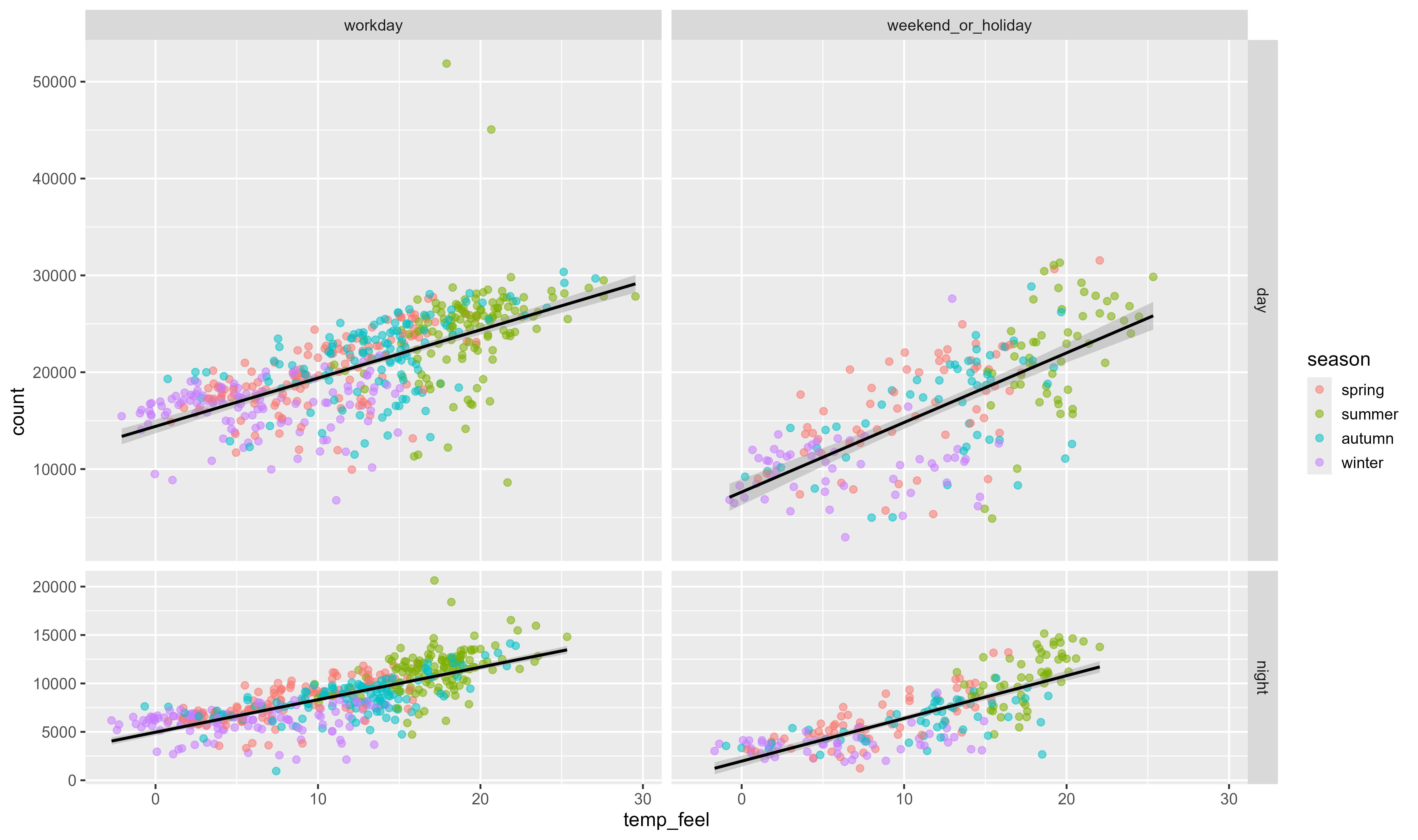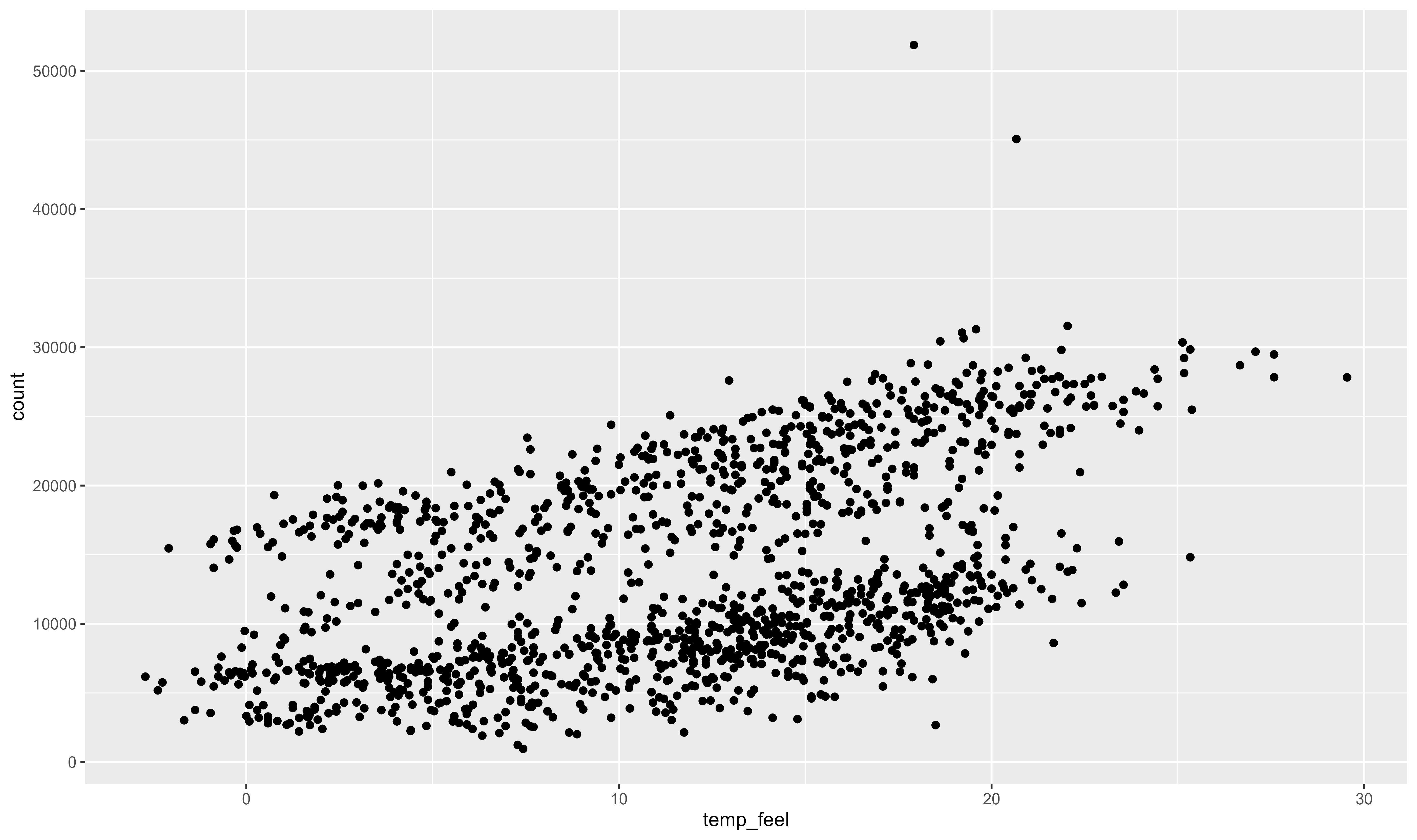 ggplot(bikes, aes(temp_feel, count)) +