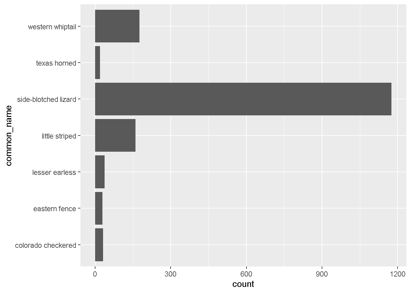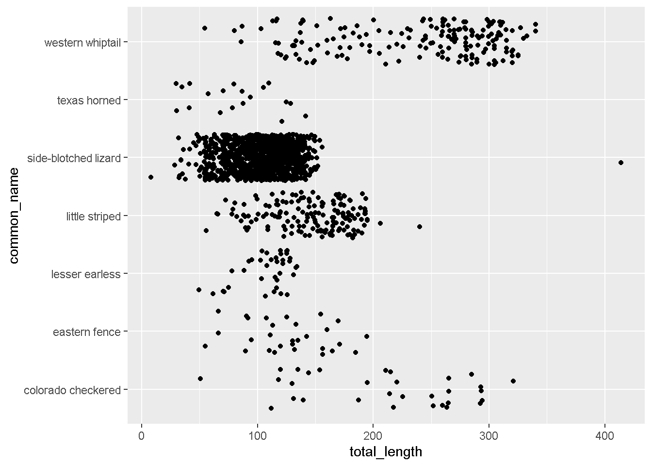 ggplot(data = lizards, aes(y = common_name, x = total_length)) +