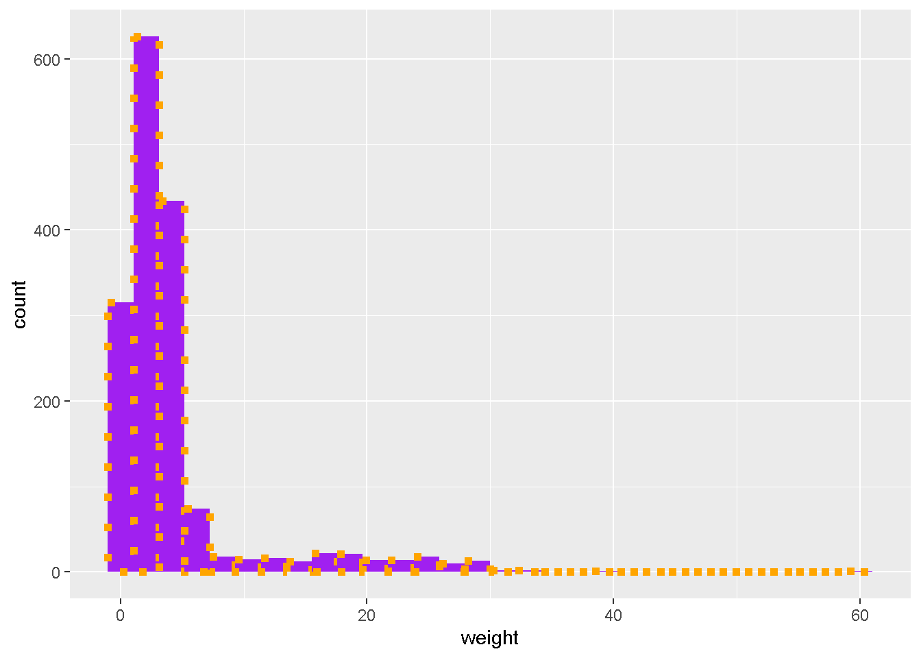 Berikut adalah contoh penggunaan parameter estetika berdasarkan konstanta untuk membuat grafik histogram yang unik (atau mungkin agak “mengerikan”):