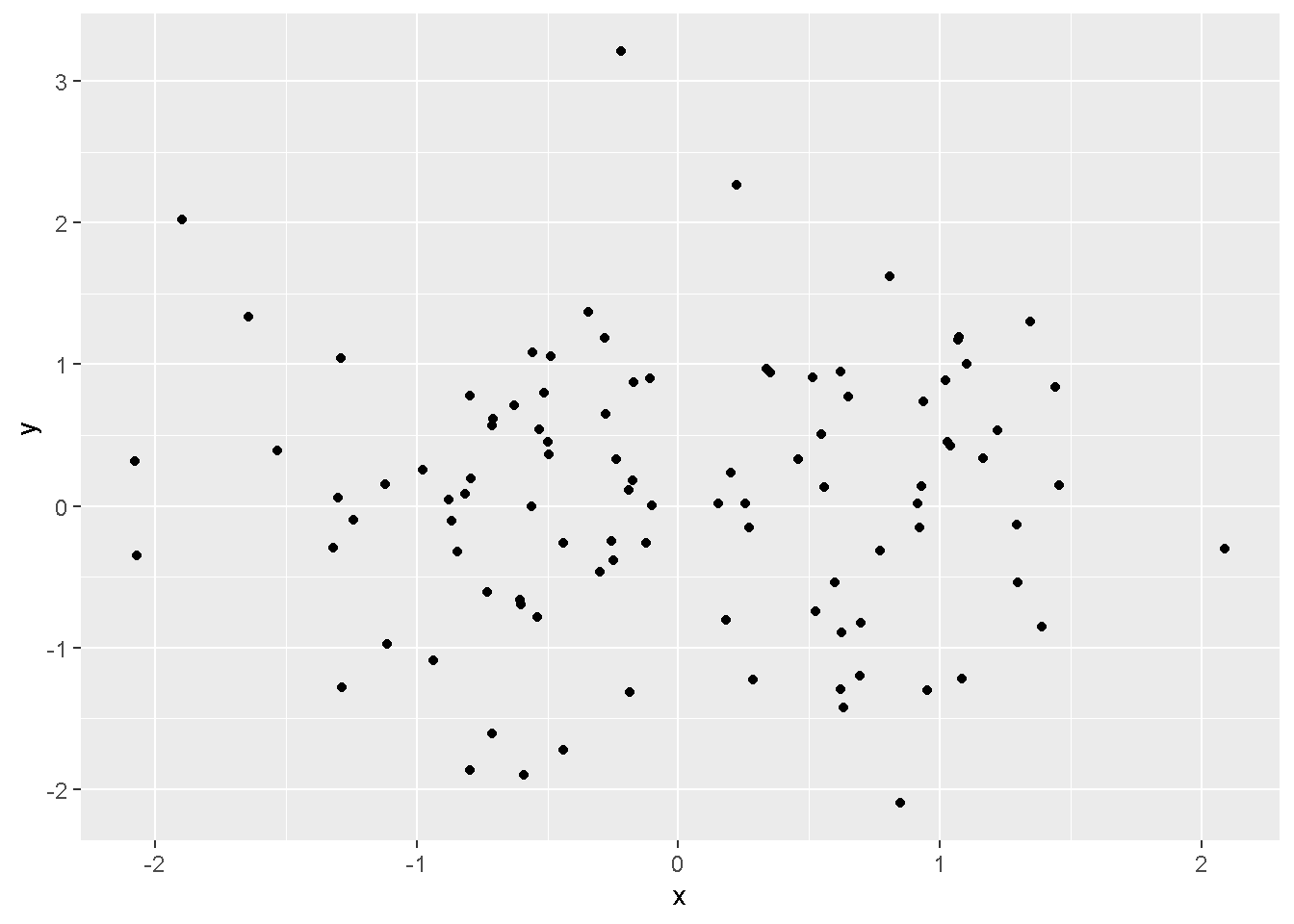 x = rnorm(100), # Nilai acak untuk sumbu x